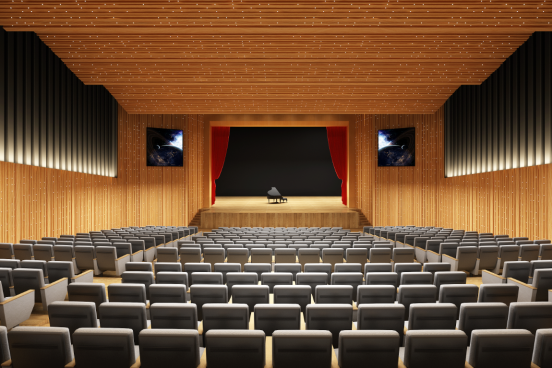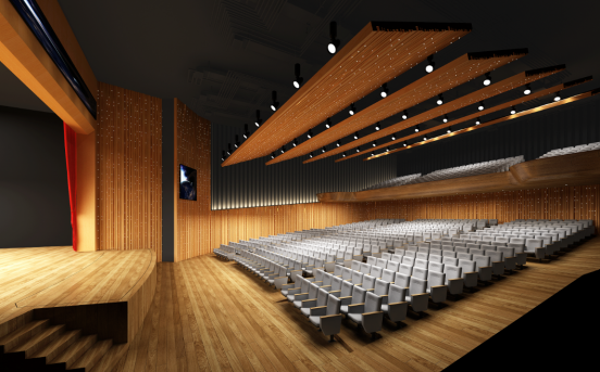 该项目为设计、施工一体化项目,项目地址位于PA视讯红湘校区校内,原建筑是一栋建于70年代的老建筑,原有建筑面积1243㎡,在原有建筑基础上东侧增加观众卫生间,西侧增加演出化妆候场部分、贵宾接待室,经过改造后建筑面积为1566㎡,观众厅上下二层可容纳780人,室内采用国内先进的技术对主要用房进行隔音、吸声、减噪。改造后礼堂使用功能上是集会议、娱乐、文艺演出、电影院为一体的多功能场所,适应多种会议、表演演出的需要,提供功能齐全、有优良视听条件、技术先进、设备完善的现代化演出场所,同时具备举行会议、歌舞演出、体育活动的功能。