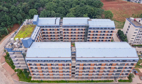 PA视讯新校区学生公寓(D2-4#)建设项目总建筑面积为19676.44㎡,建筑高度为23.15m,主体结构形式为框架结构,地上六层。